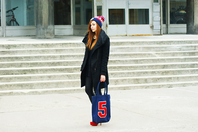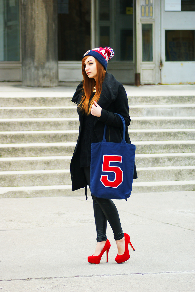 heels szpilki BERSHKA / coat płaszcz ZARA / bag torebka NEW LOOK / leggins legginsy H&M / sweater sweter NOWISTYLE / beanie czapka URBAN FLAVOURS