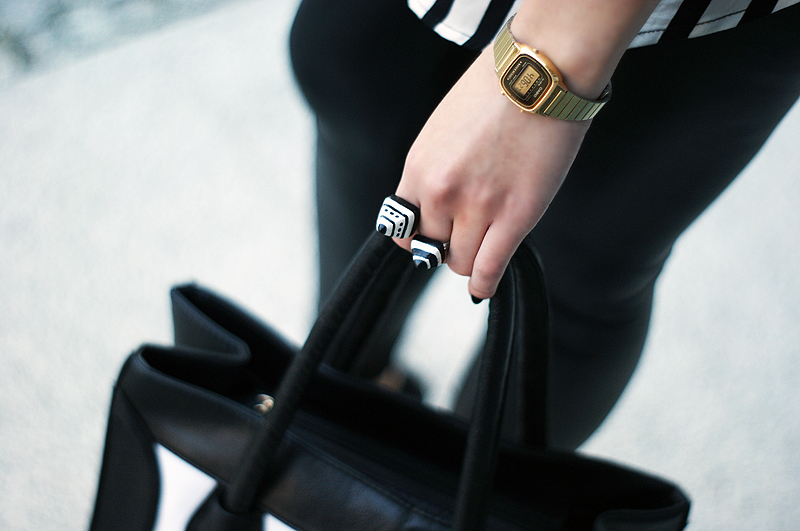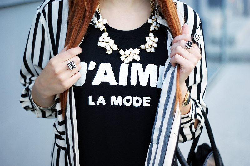 PL: Dziś outfit całkowicie czarno-biały. Mimo kolorów, które dość pochłonęły mnie tej wiosny lubię wrócić do klasyki. Jak zauważyliście naszyjnik jest ostatnio jednym z moich ulubionych, tak samo jak czarno-biała torba. Mam na sobie też nowe czarne szpilki z zaostrzonym czubkiem i świetny snapback od Urban Flavours.