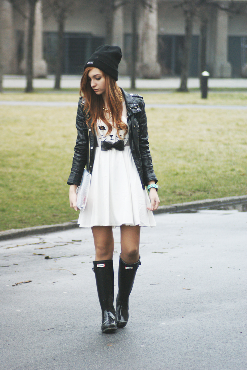 OdpowiedzUsuńOmg the dress is the CUTEST!! Love how you paired it with the rubber boots and leather jacket - so perfect! <3